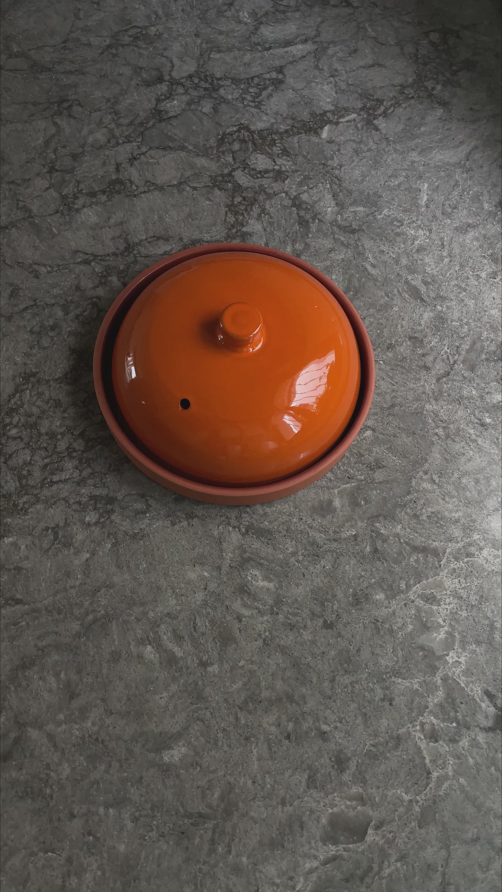 הכלי מורכב משני חלקים: מכסה ומחבת תחתית, עשויים קרמיקה עמידה ומעוצבת בעבודת יד.