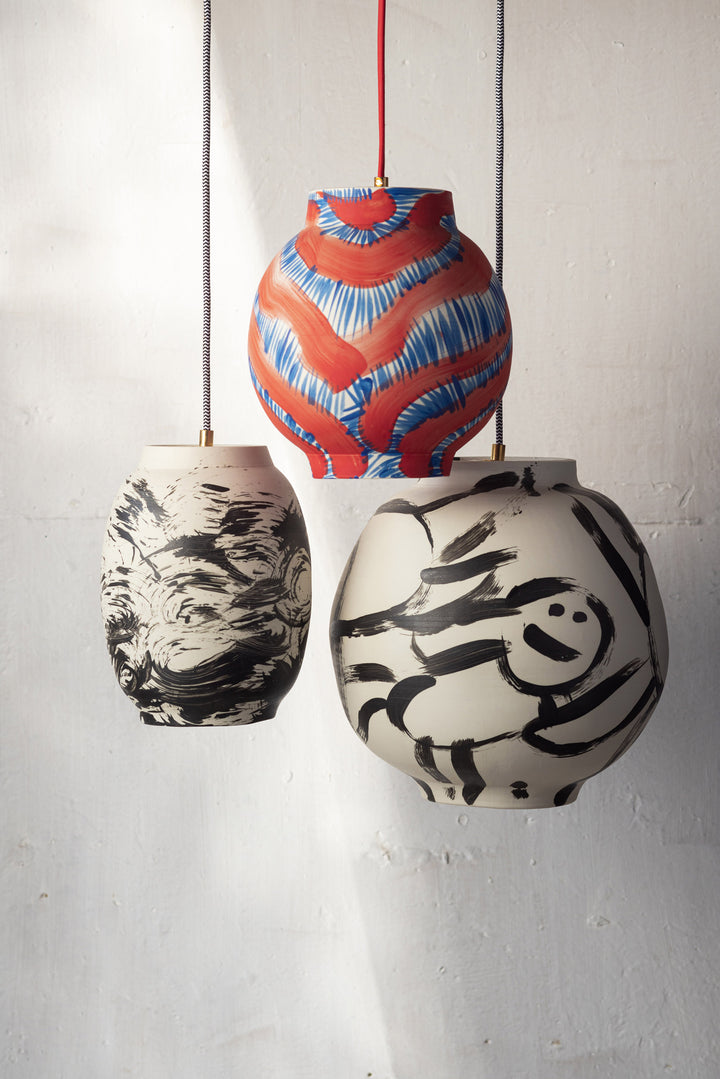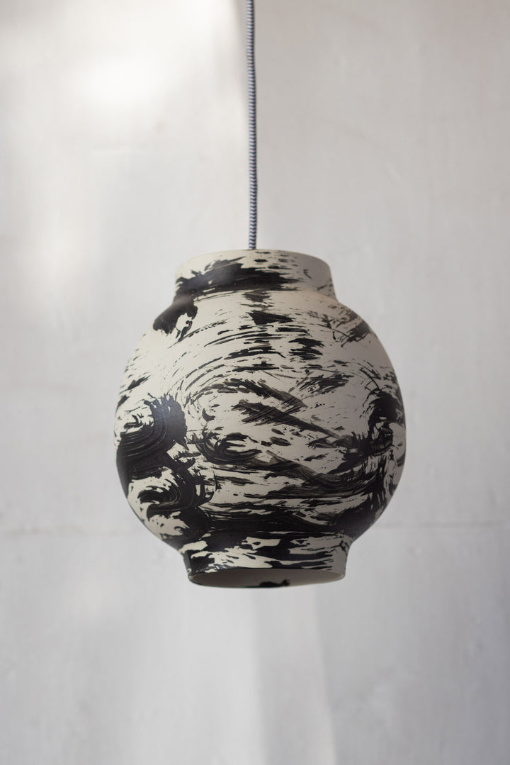 Hand made porcelain lamp with elegant hand dawned paintings.