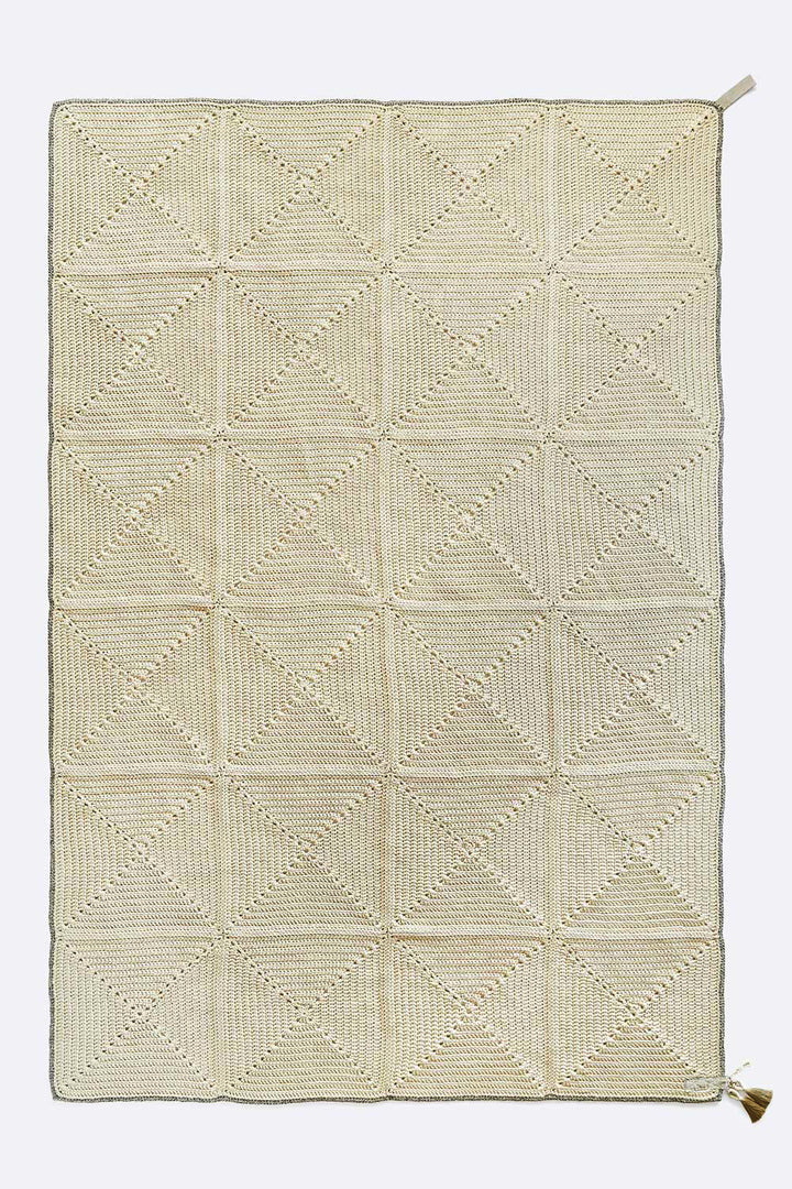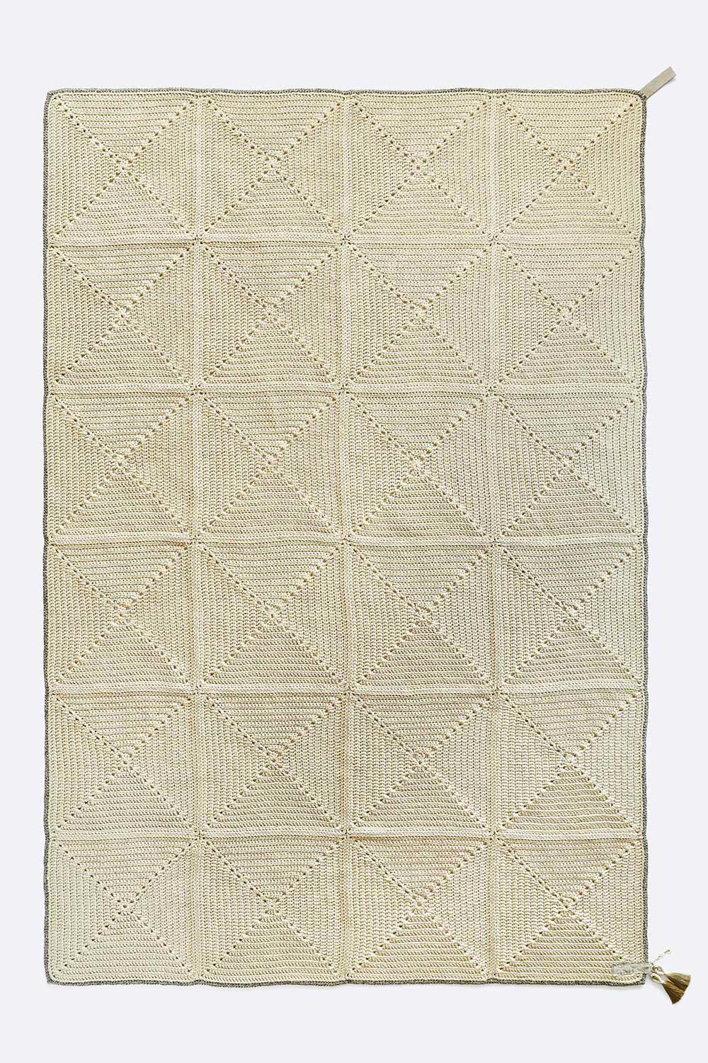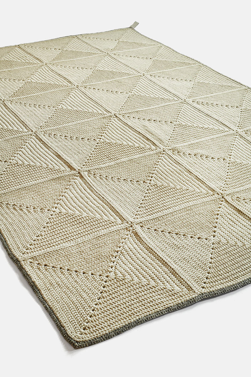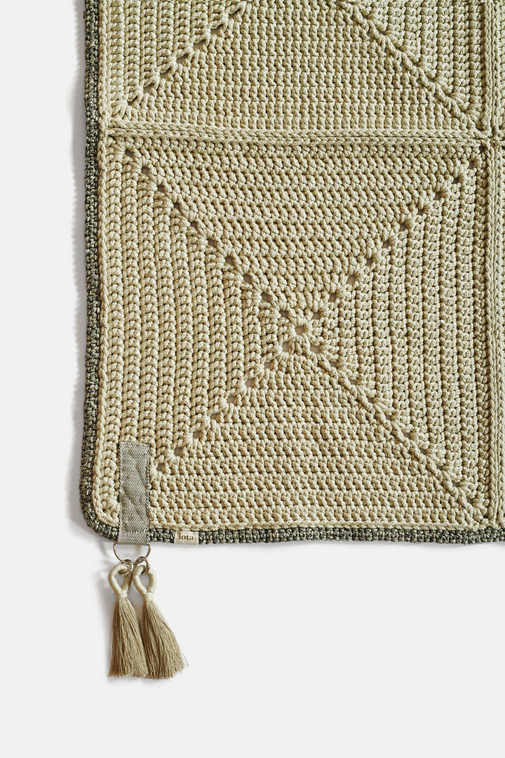 The classic crochet granny square takes a contemporary twist in this outdoor rug. Large squares form the rug, framed with bespoke webbing. Handmade from UV-protected bespoke iota yarn in earth tones, the textile is soft, yet durable and suitable for interior and exterior spaces. This collection pairs thick and artful crochet with smart, high-level tailoring.